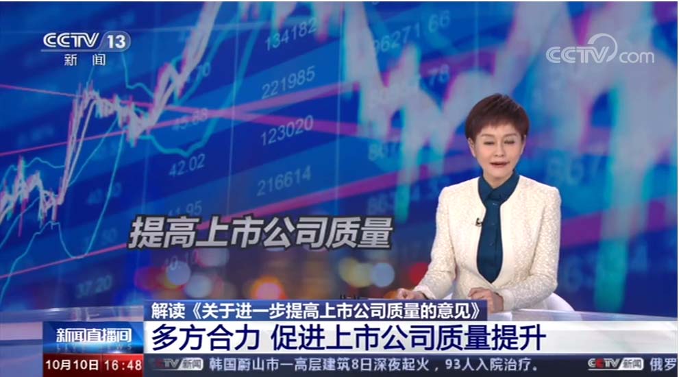 10月10日,在央視CCTV13(新聞頻道)新聞直播間解讀《關于進一步提高上市公司質量的意見》:多方合力,促進上市公司質量提升報道中,華訊方舟集團再度出鏡